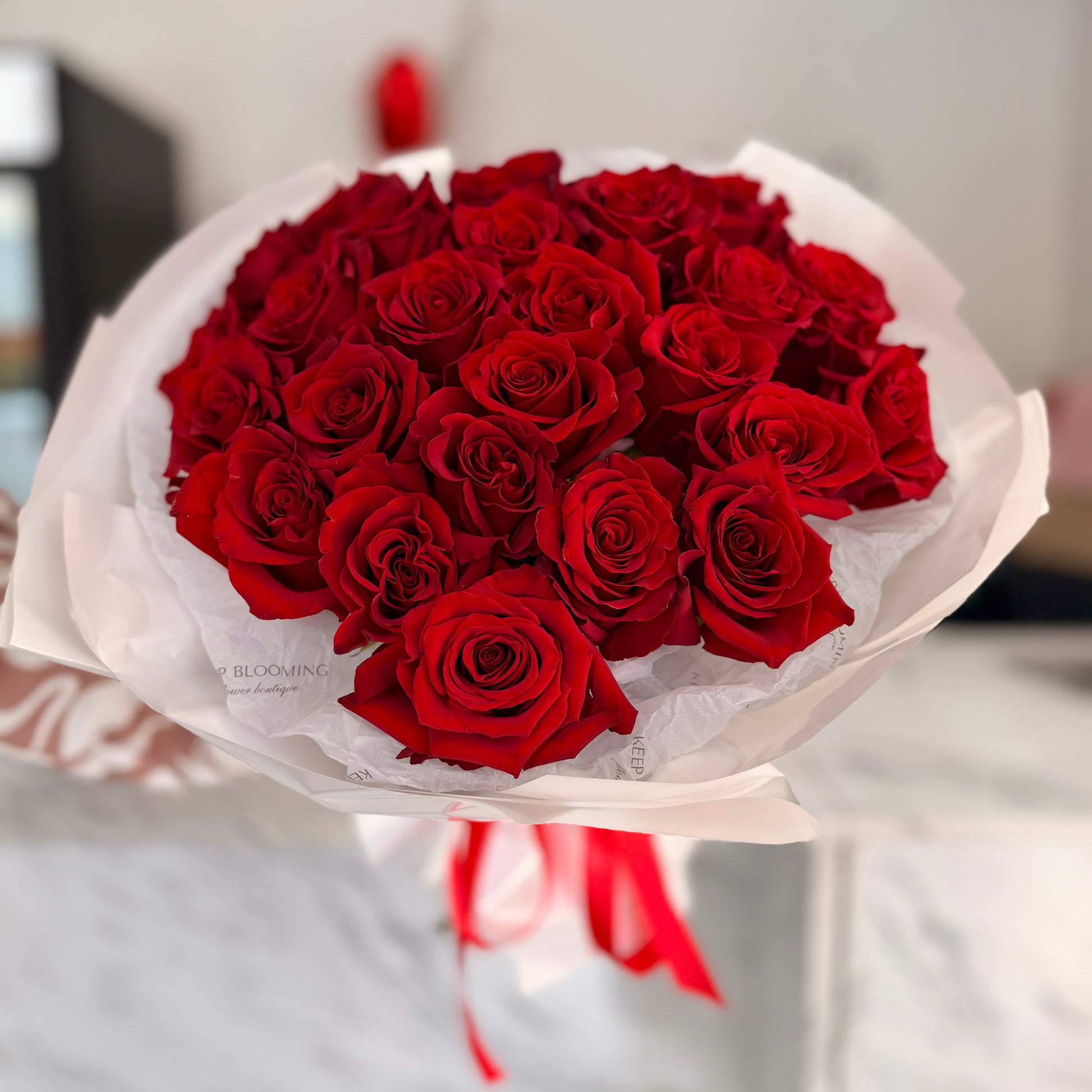 The One & Only Bouquet features 25 stunning red roses, beautifully arranged to symbolize deep love, passion, and devotion. Classic yet powerful, this bouquet makes a bold statement of romance and heartfelt emotion.